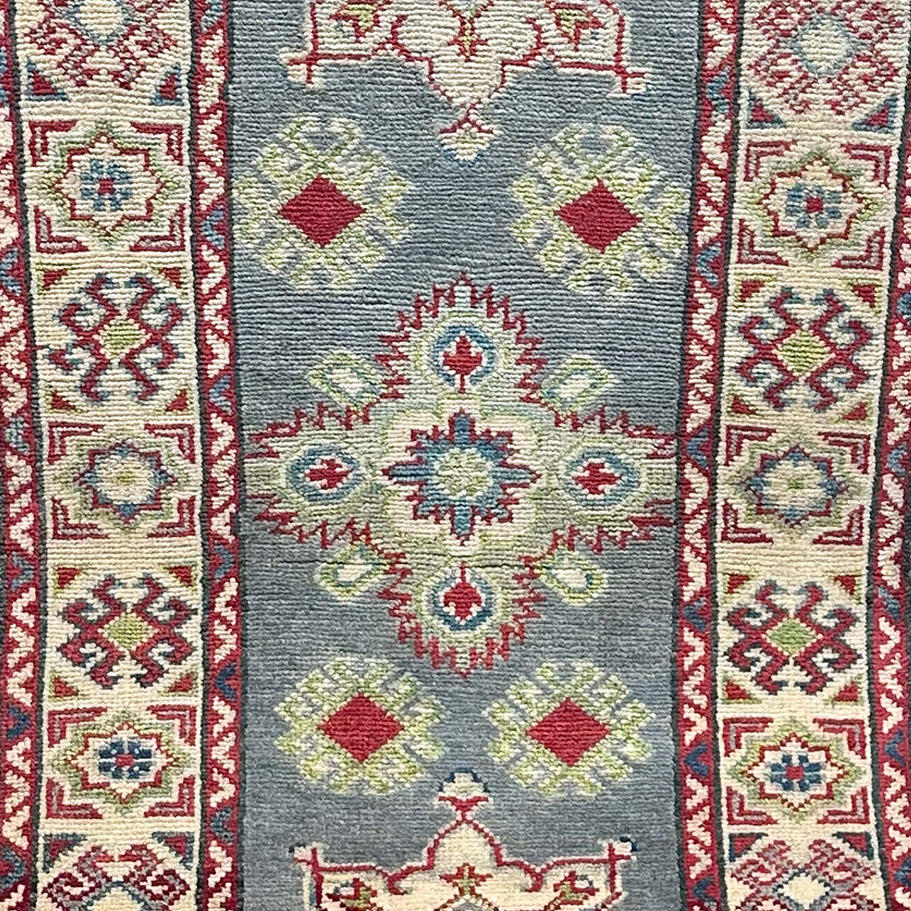 This Afghan runner is made exceptionally beautiful with expert hand-knotting by quality Afghan weavers who possess a rich cultural heritage of the people of Kazakhstan. The pattern combines classic geometric stars and flower patterns, which have been inherited over several generations. It has perfect craftsmanship that portrays the beauty and heritage of Afghanistan, which makes it an ideal piece to have in a space.