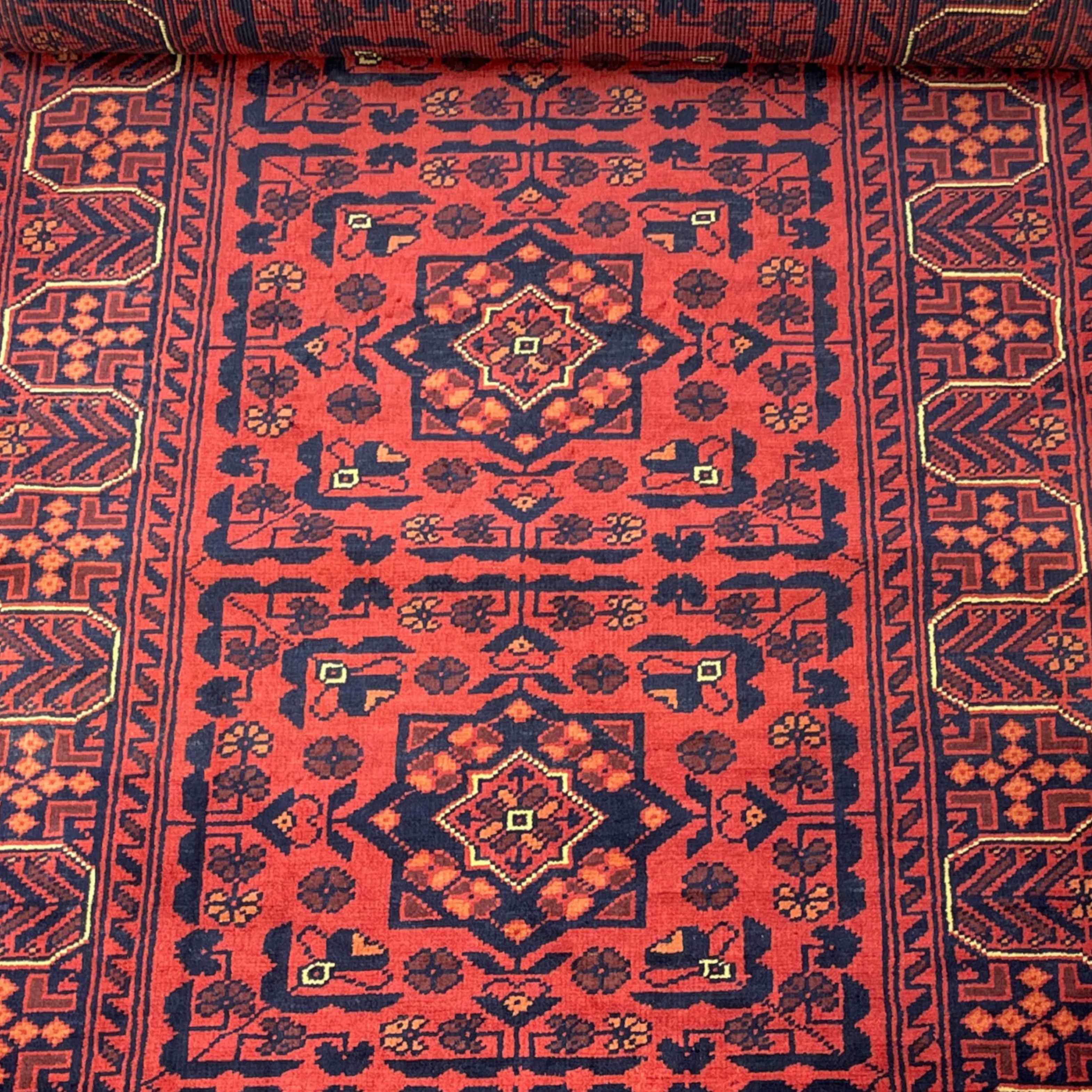 This hand-knotted rug was meticulously hand knotted with a 50x50 knot density and is an example of wove artisan skilled warriors and weavers of Afghanistan. The uniformity of pile height, tightness of knots and alignment of motifs makes it keep its shape and detailing decades to come. Every carpet represents a work of tradition that was made using generational expertise and attention.