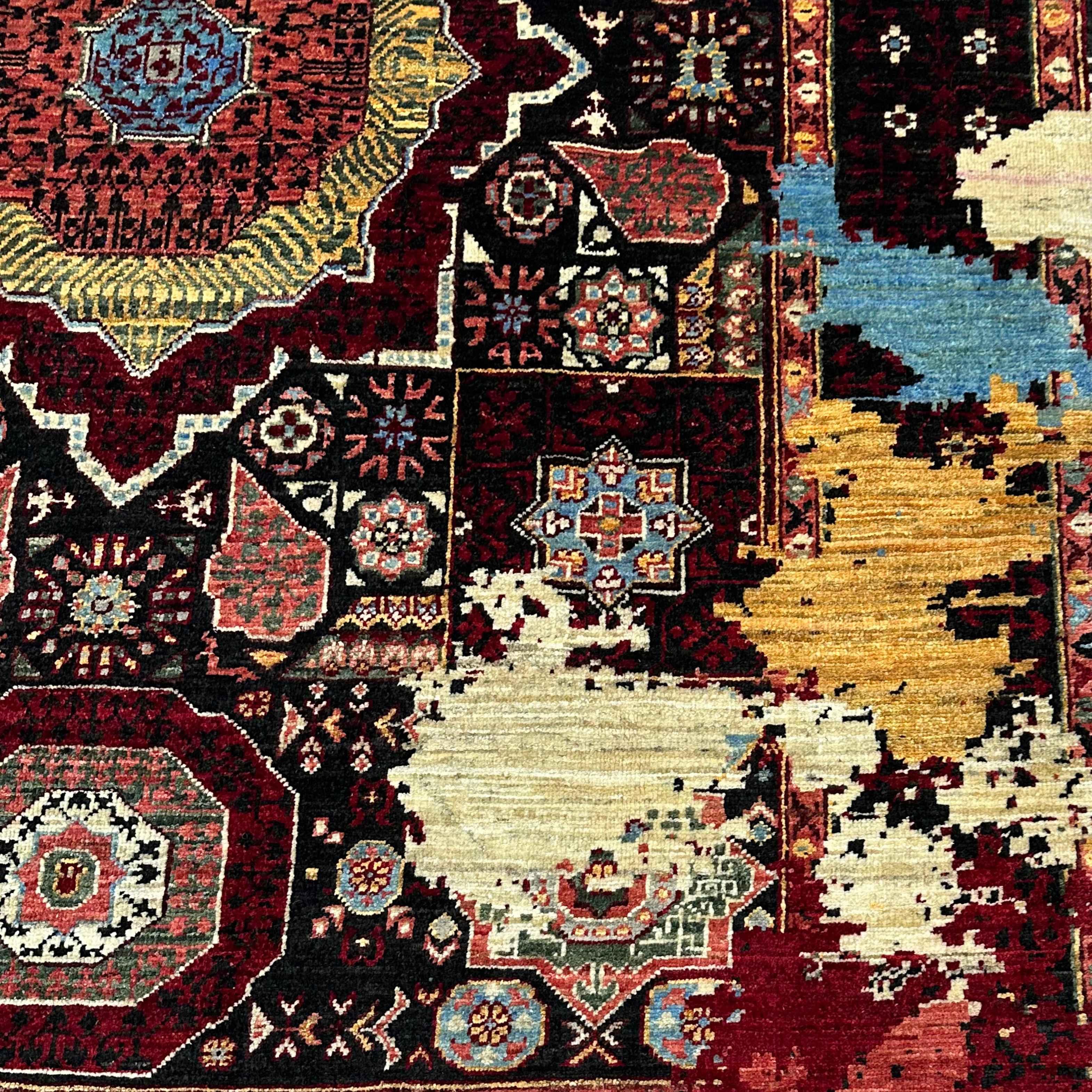 It is woven out of hand-spun Ghazni wool and dyed with sustainable botanical dyes. The rug is naturally beautiful with the colors being trapped in by old dyeing techniques; therefore, not only is this rug extremely beautiful but sustainable, biodegradable, and contains no artificial processes or toxins.