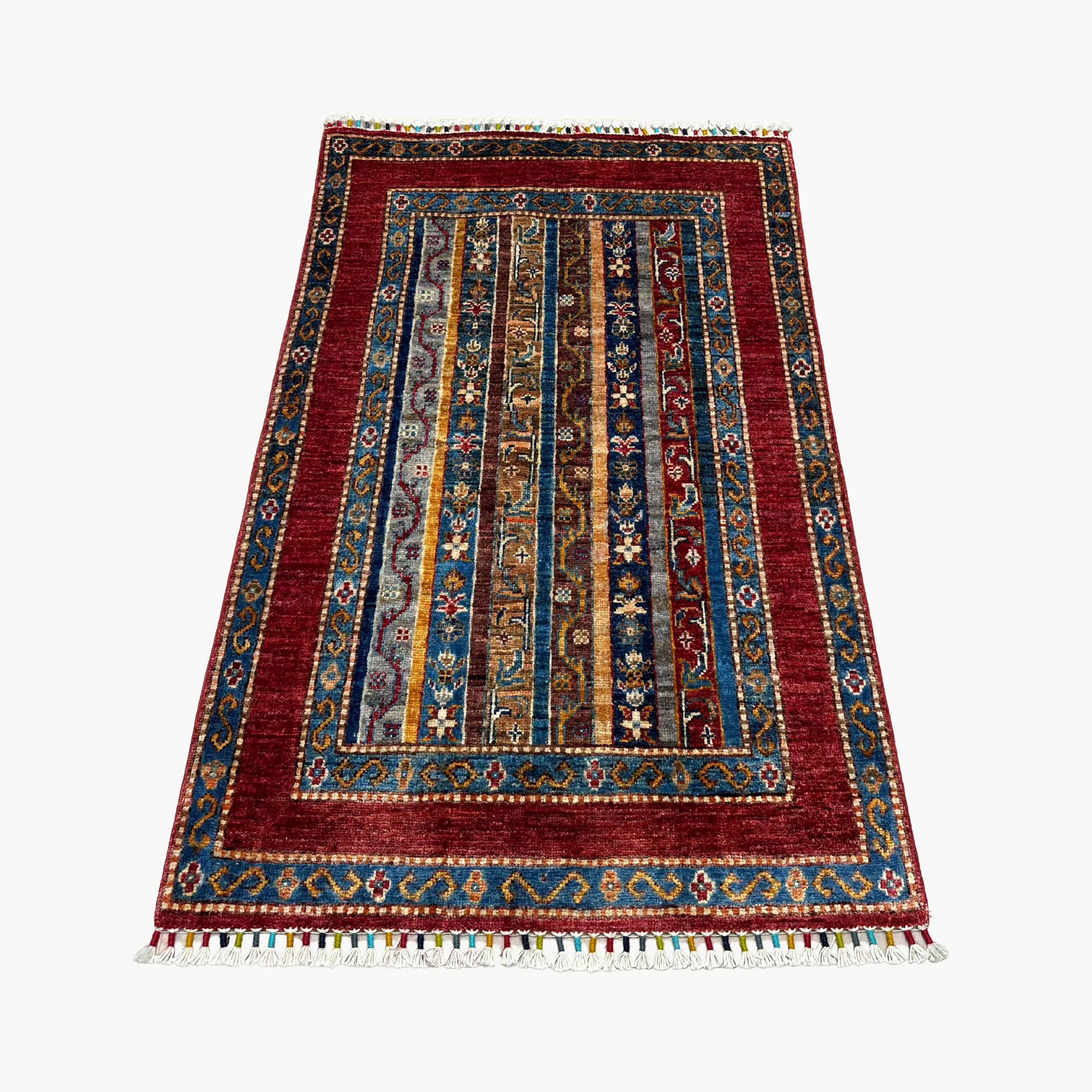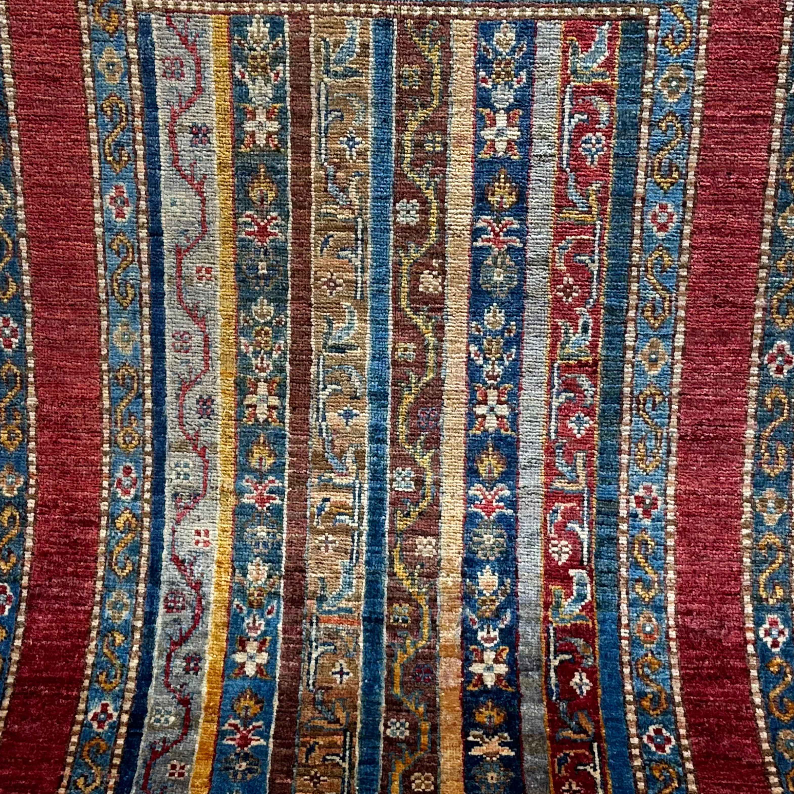 In the Afghanistan of the weaving tradition, the stripe motifs represent life and the movement of time. The repetitive floral and geometric features provide goodness of fortune and security. This Shaal rug continues the tradition of beauty and meaning that is deeply integrated into it, so that it forms culture as well as a design product.