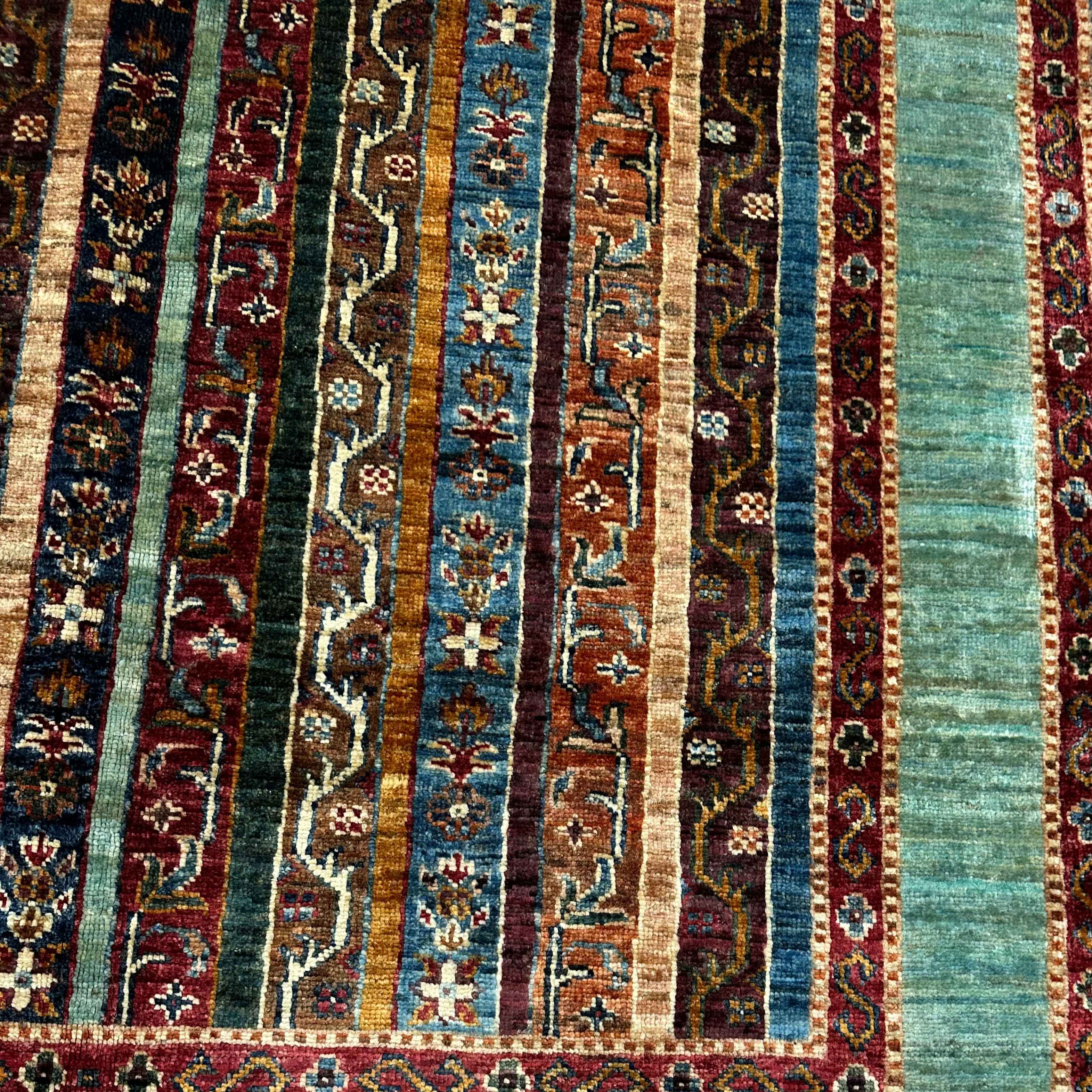 This Shaal rug, which is produced by hand in the craftsmen-hill villages of Northern Afghanistan, continues a tradition of tribal weaving prowess. With the patterns of carpets inspired by the nomadic stripes and Persian border ornaments, it succeeds at retaining the originality in the local crafts and at the same time reinventing it to suit the modern household, where people appreciate not only the cultural heritage but also the original aesthetics.