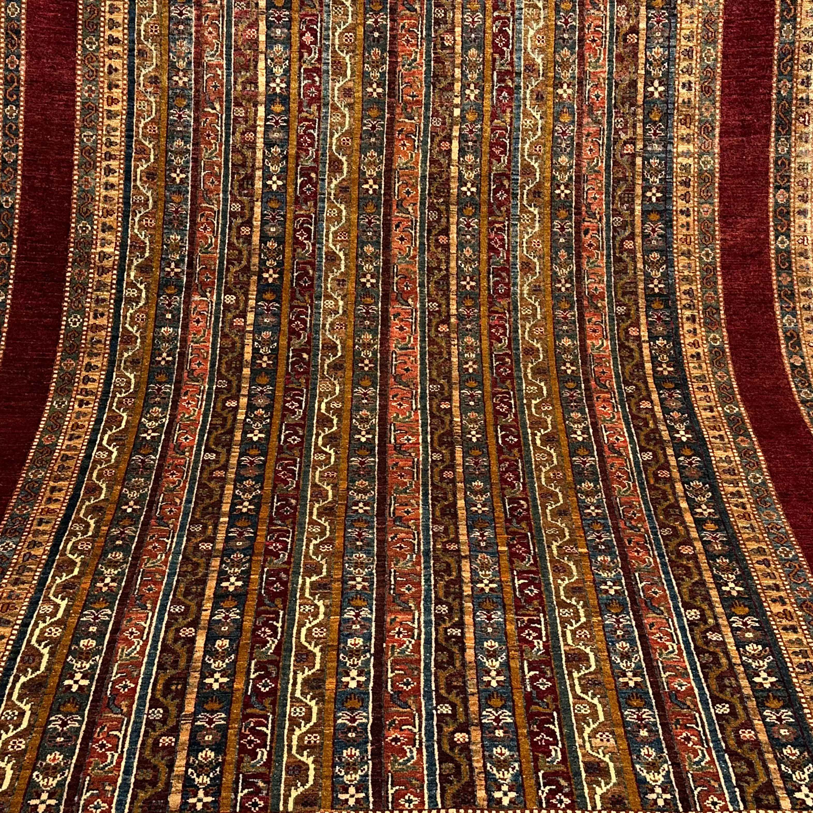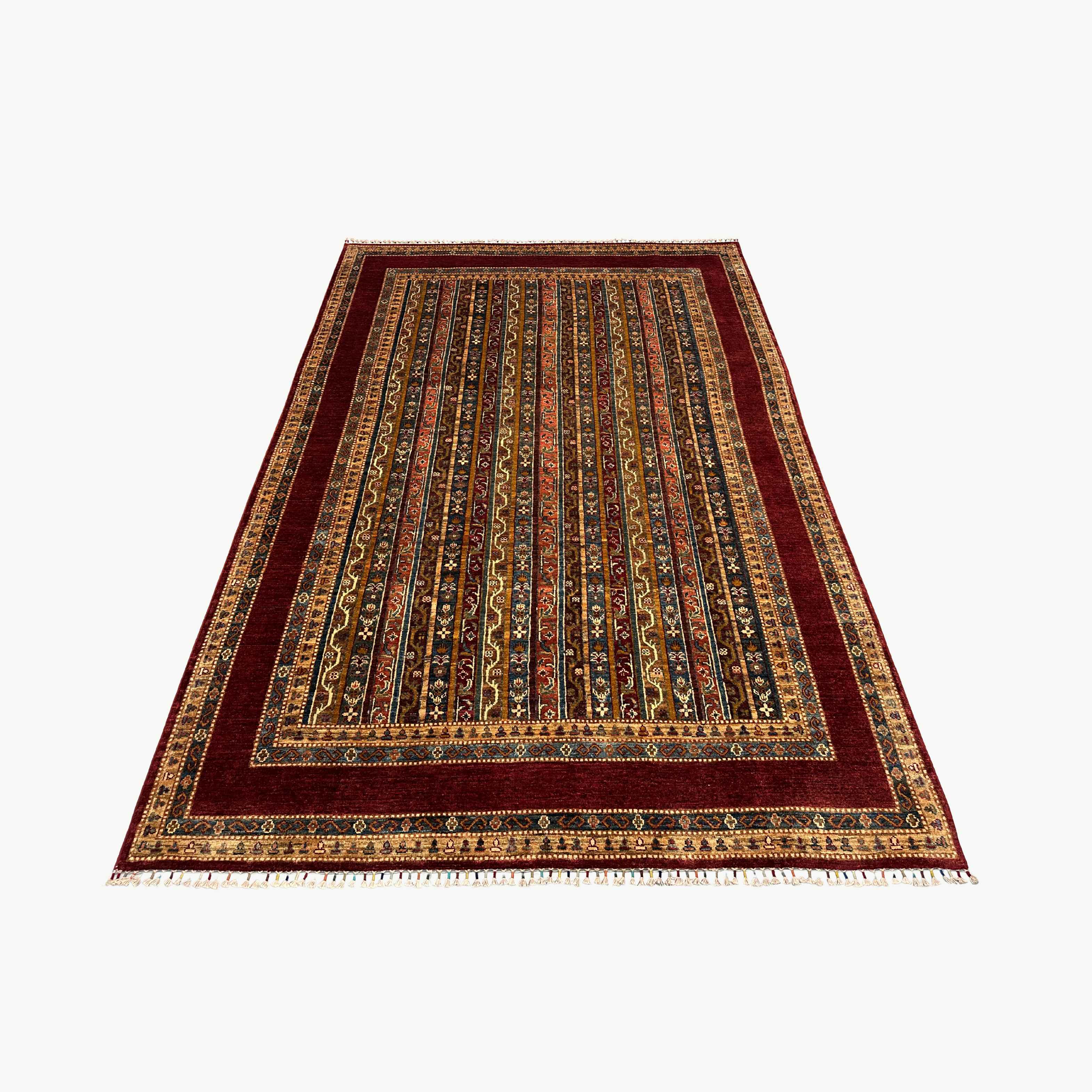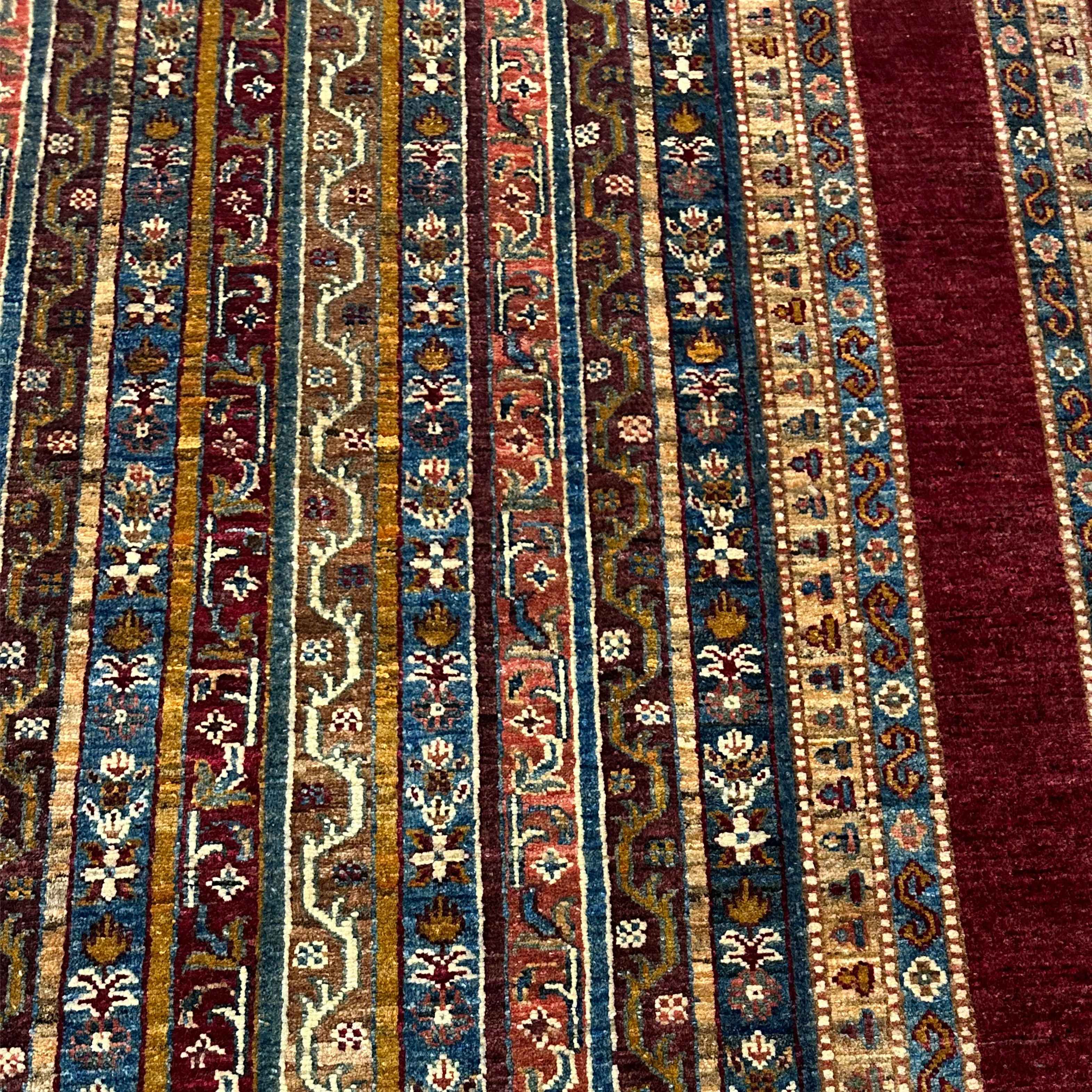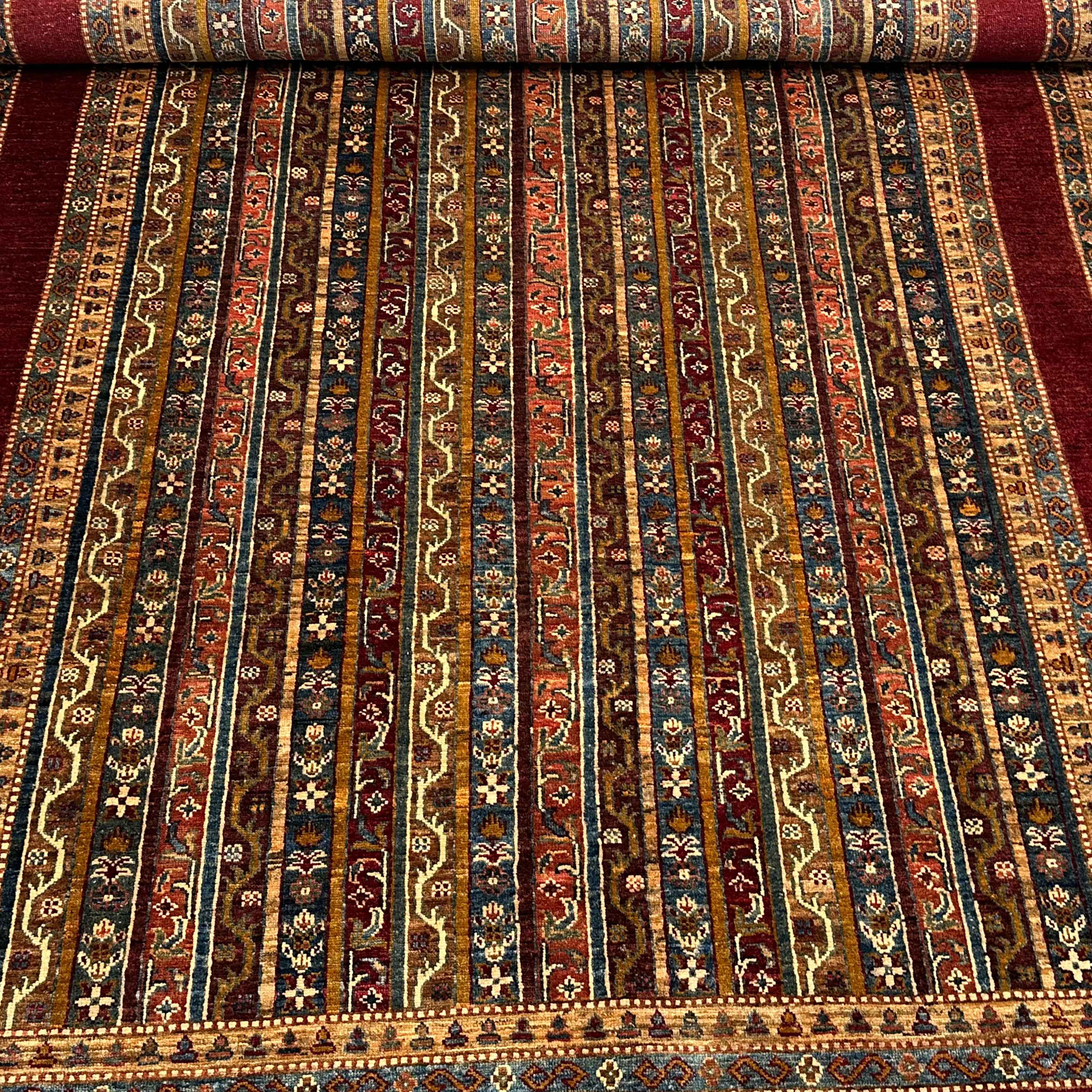 This is a handwoven masterpiece, which in Northern Afghanistan, Shaal artisans uphold centuries-old traditions of weaving. Taking its cue from Caucasian and Persian stripe designs, it is geometrically balanced yet has a free-flowing tribal design. The outcome is an entirely culturally-grounded and image-rich floor covering that has a place in either traditional or modern settings.