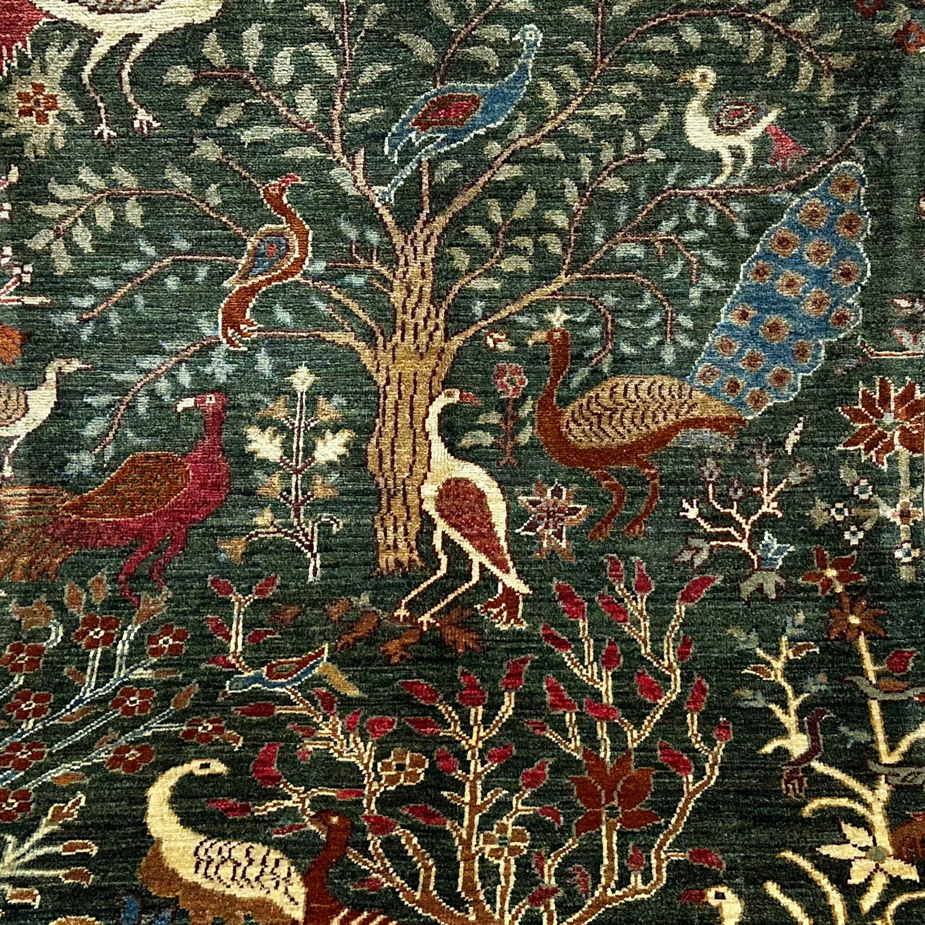 The Tree of Life is the sign of prosperity, the affiliation with nature, and the spiritual combination among Persian and Central Asian communities. More than decoration, this rug is a story made with wool as every single bird and blossom has multiple meanings -- the peacock to its beauty; the crane to its longevity.