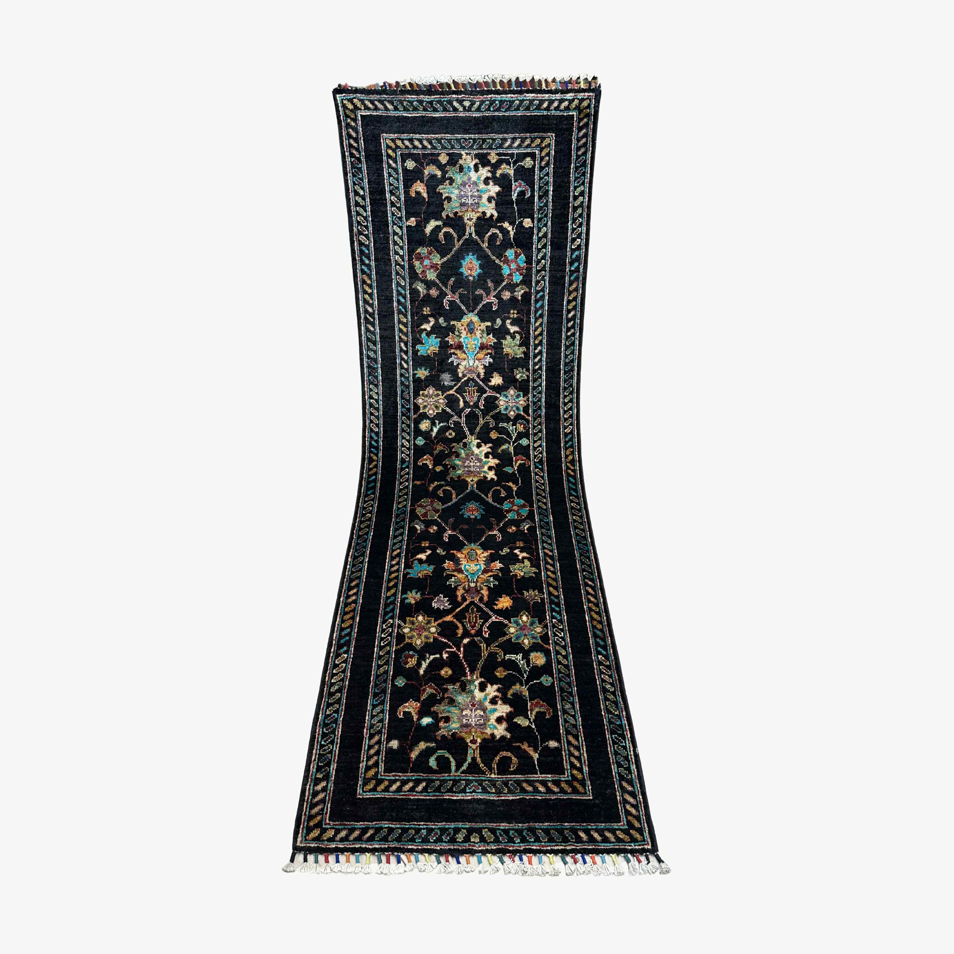 This Sultani runner is woven in the tribal weaving studios of Afghanistan, and it forms part of centuriesâBalshawth century-old artistic heritage. The Persian influence and the nomadic symbolism are expressed in its motifs, which are beautiful trees, flowers in blossom and climbing vines. Traditionally crafted by generations of makers, each knot holds identity, meaning, and tradition and makes a functional textile culture with stories.