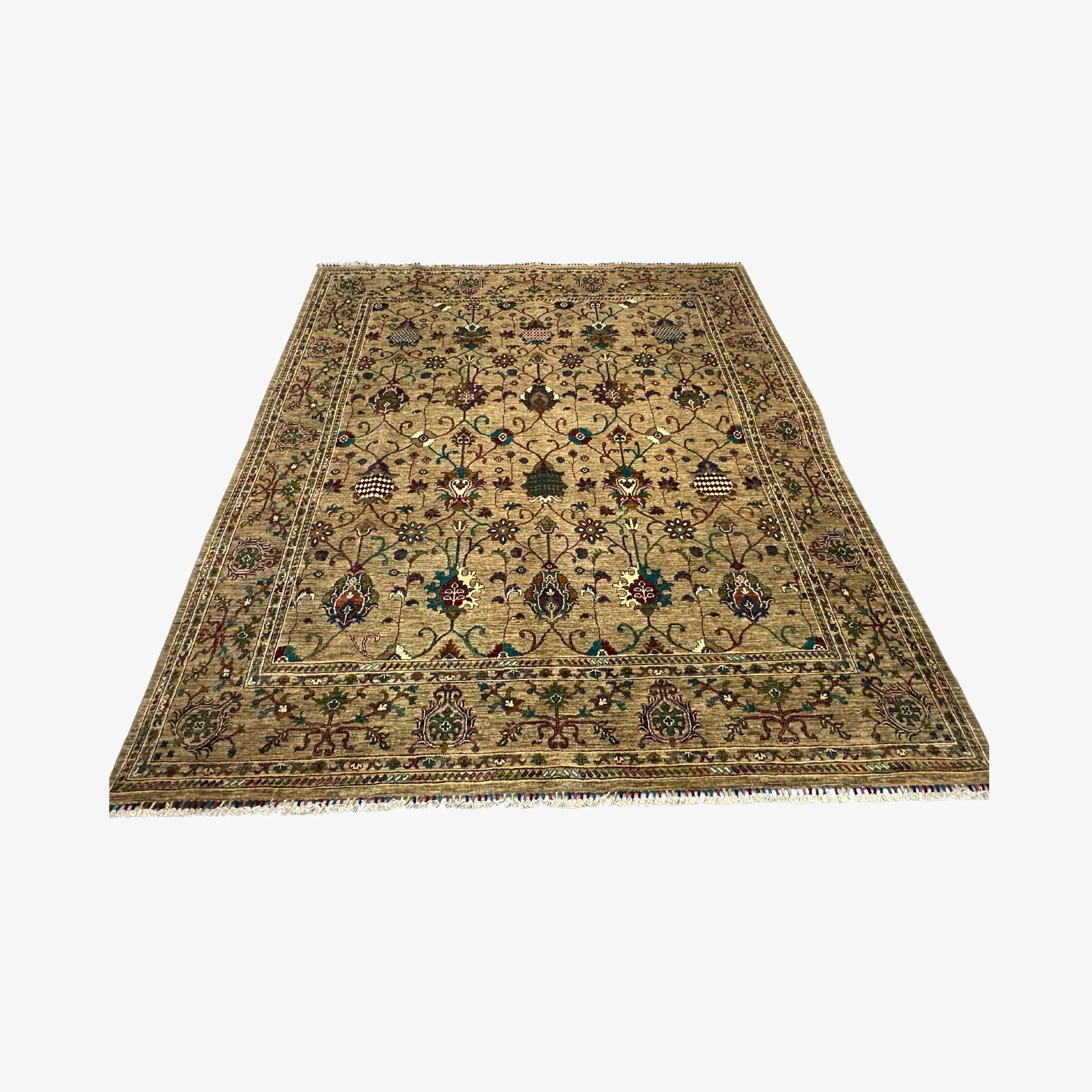 Weaving in Afghanistan and Persia long featured floral vine motifs standing as a symbol of abundance and harmony. Such patterns are traditionally used in conveying blessings and therefore have spiritual meaning and cultural implications. This rug is a continuation of this art, combining aesthetics with narration, providing not only a carpet but a long-lived monument to human art and culture.